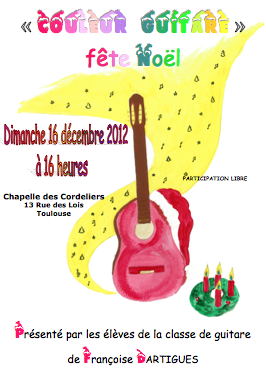 Couleur Guitare proposait un concert de guitare pour fêter Noël, le 16 décembre 2012, à la Chapelle des Cordeliers à Toulouse.