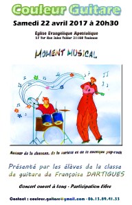 Le prochain concert « Couleur Guitare » aura lieu chez les Petites Sœurs des Pauvres dans la Résidence « Ma Maison » 130 avenue Jean Rieux 31500 Toulouse… sûrement au mois de Novembre 2020 … Date à confirmer …